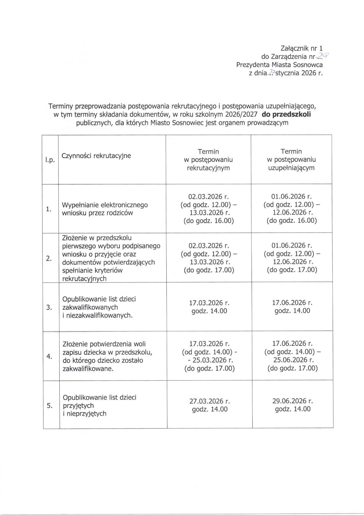 Informujemy, że zgodnie z Zarządzeniem nr 24 Prezydenta Miasta Sosnowca z dnia 27 stycznia 2025 r.