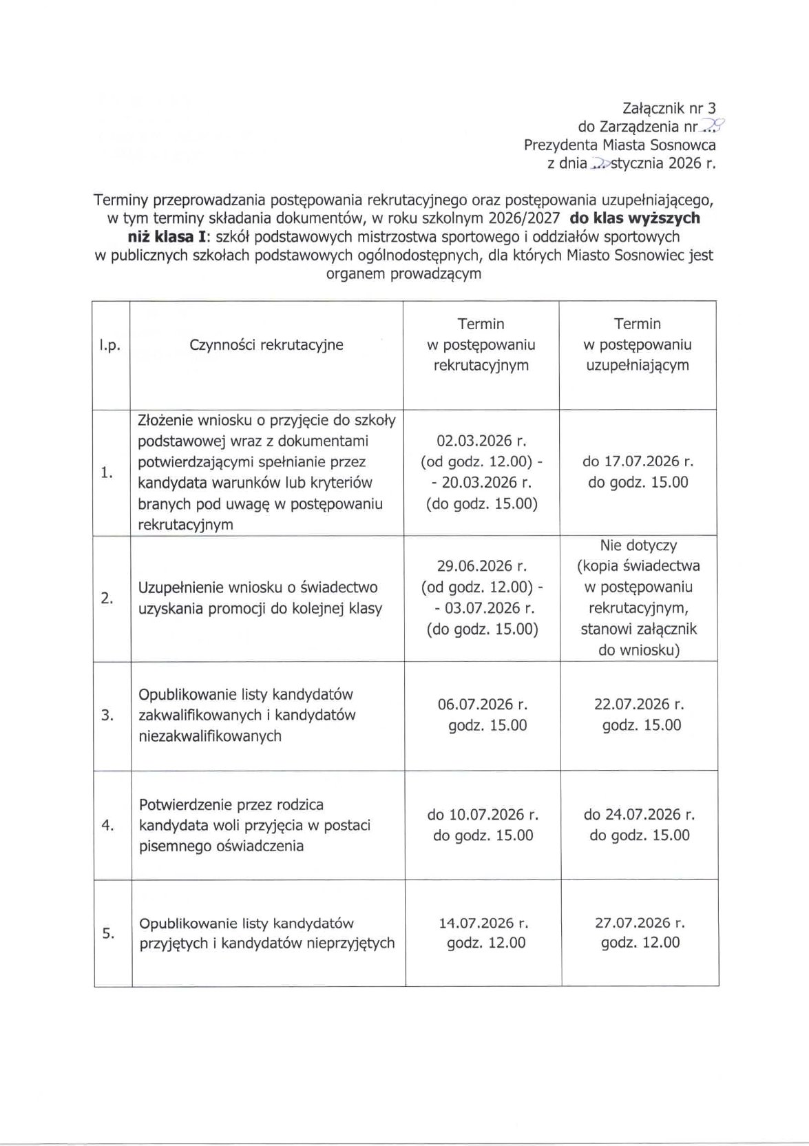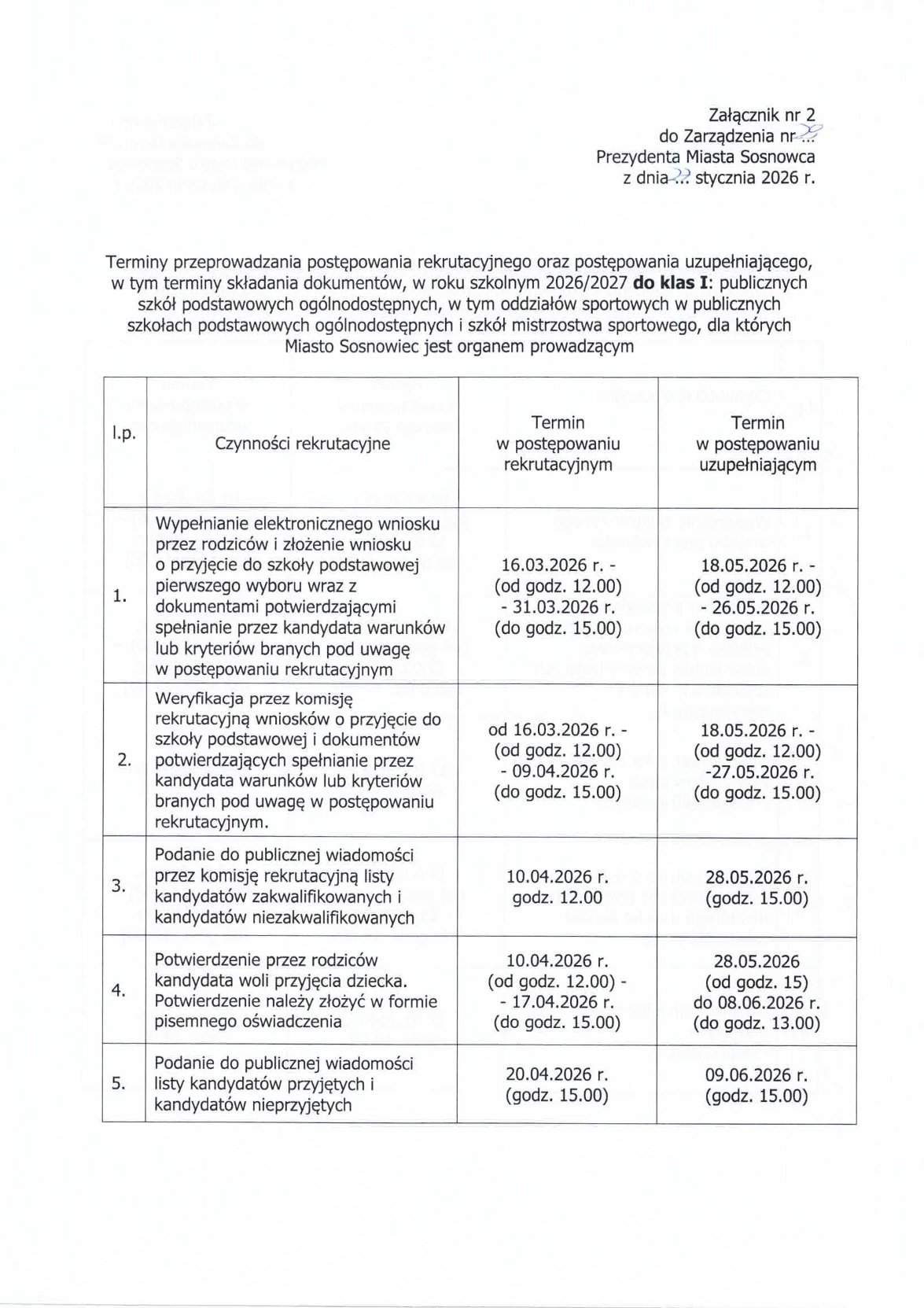 iż zgodnie z Zarządzeniem Nr 14 z dnia 10 stycznia 2023r. Prezydenta Miasta Sosnowca,