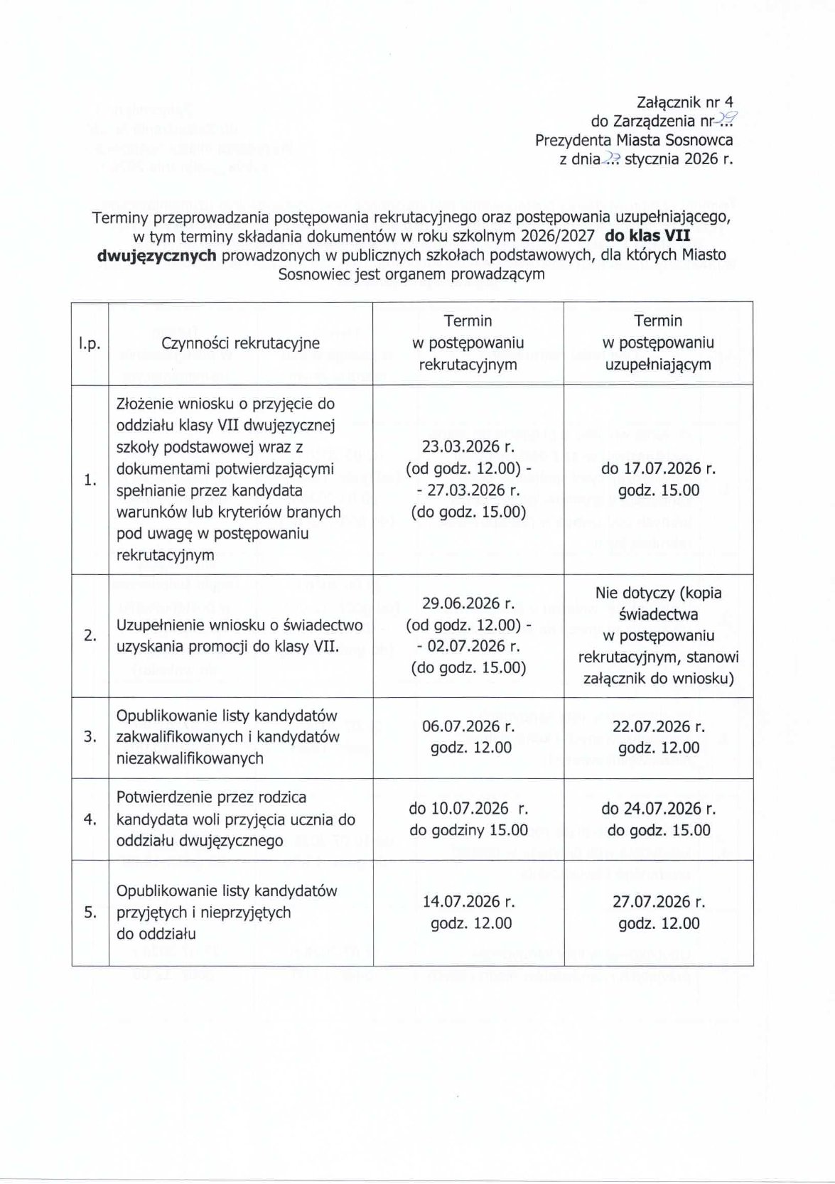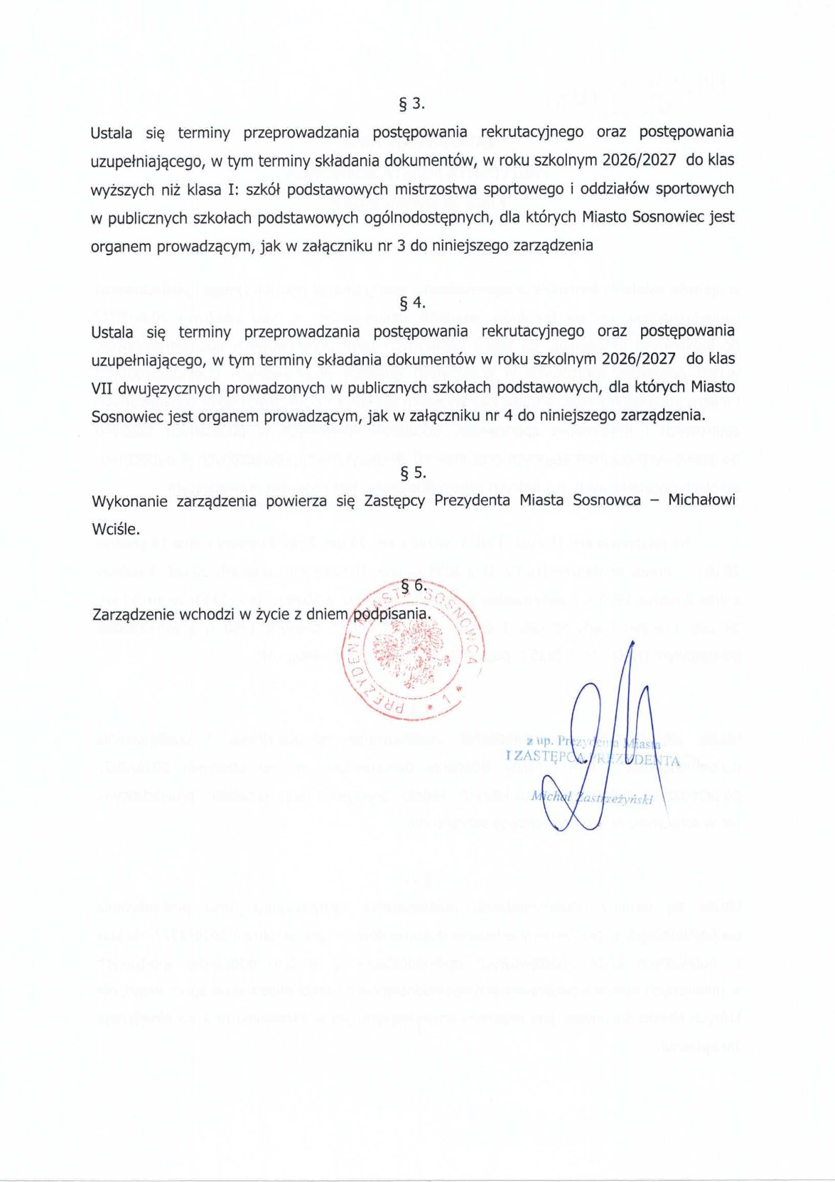 iż zgodnie z Zarządzeniem Nr 31 z dnia 23 stycznia 2024r. Prezydenta Miasta Sosnowca,